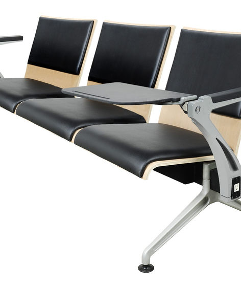 From the KWD Series, KWD-201-FM-FGT, is a waiting chair made of a combination of galvanized steel and wood. This modular chair, having attached a durable writing tablet, combine elegance and functionality required by waiting areas of airports, terminals and even hospitals.